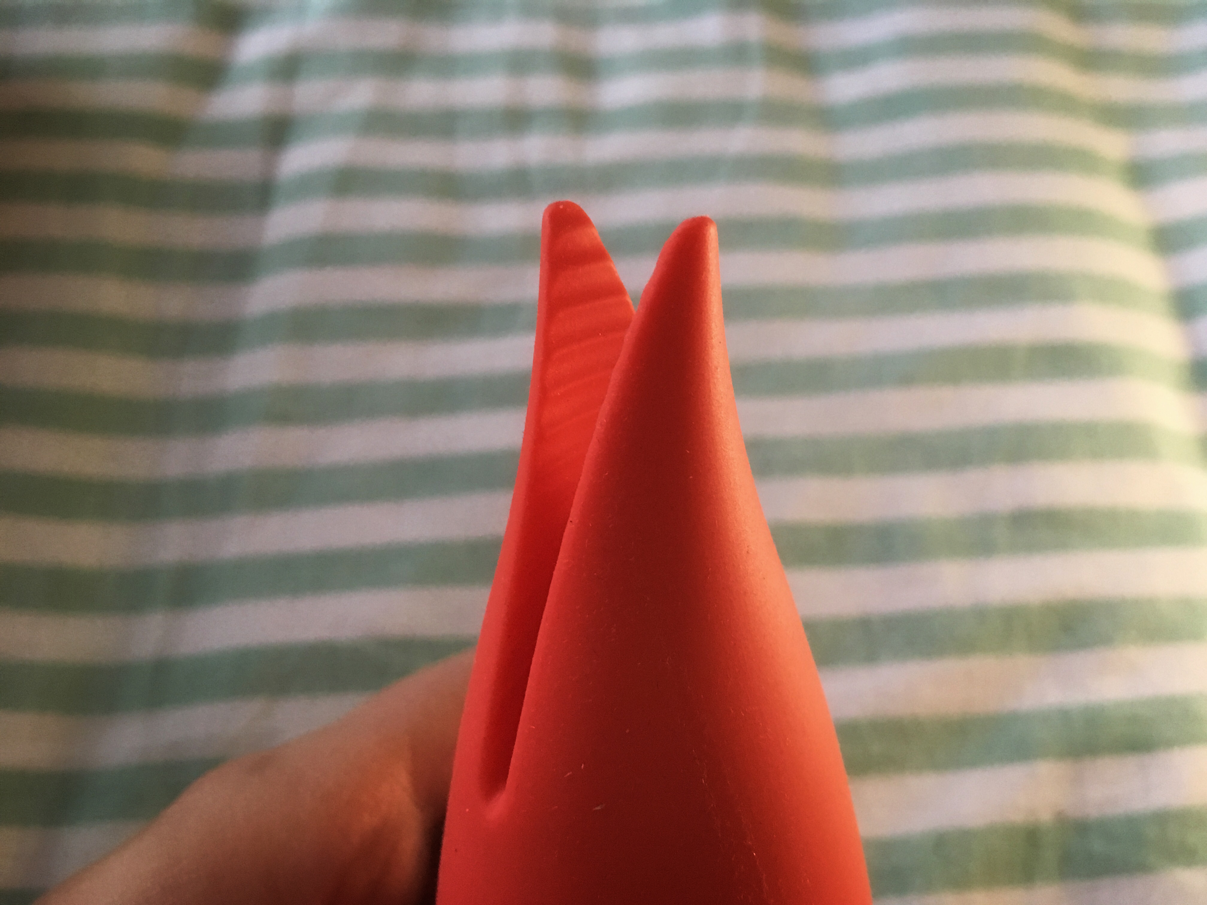 With a habit of smelling everything – especially my own cunt and things that have been rubbed up against it – it’s not surprising that I had a quick sniff of the Siren. It had a somewhat chemical smell – not like what I’d expect silicone to be like. However, my worries about the materials in the Siren were put to rest by seeing that fellow sex-toy reviewer Submissive Feminist has already performed the flame test and confirmed that it is made out of silicone.